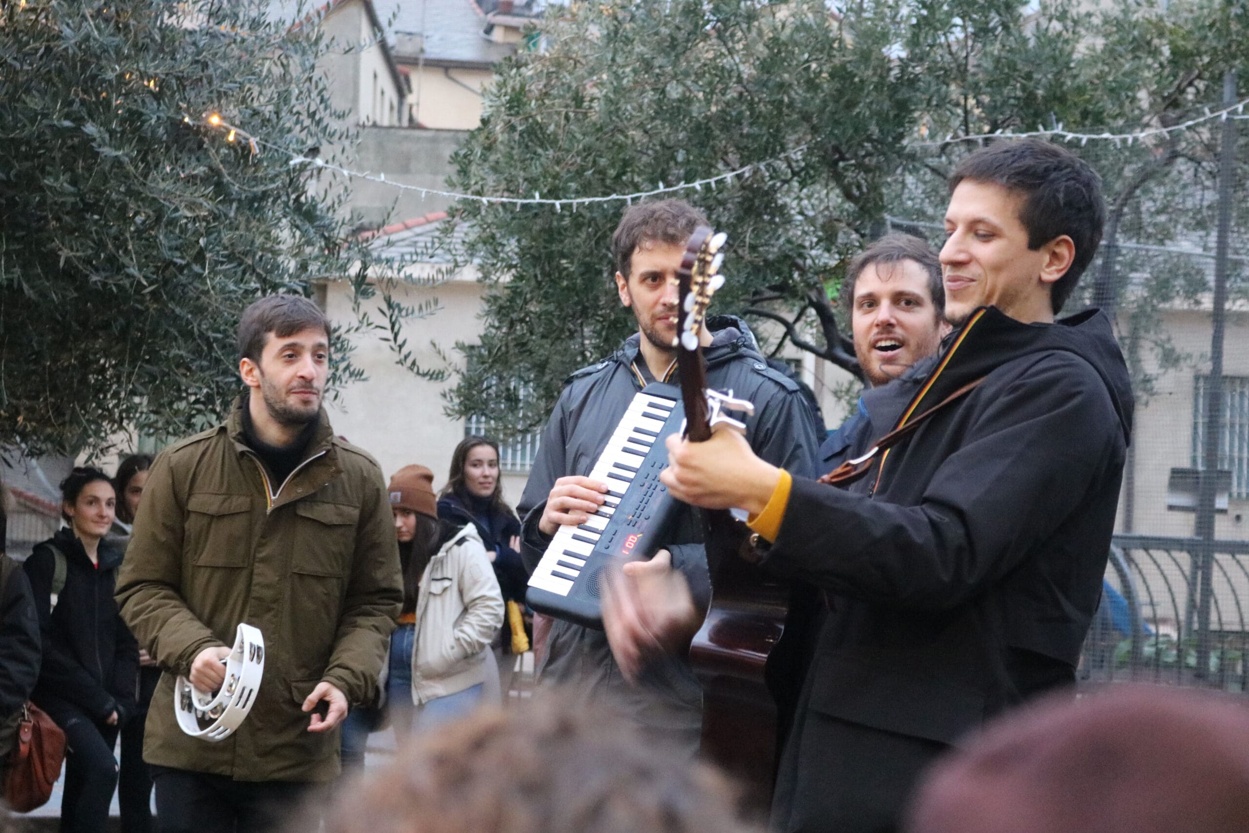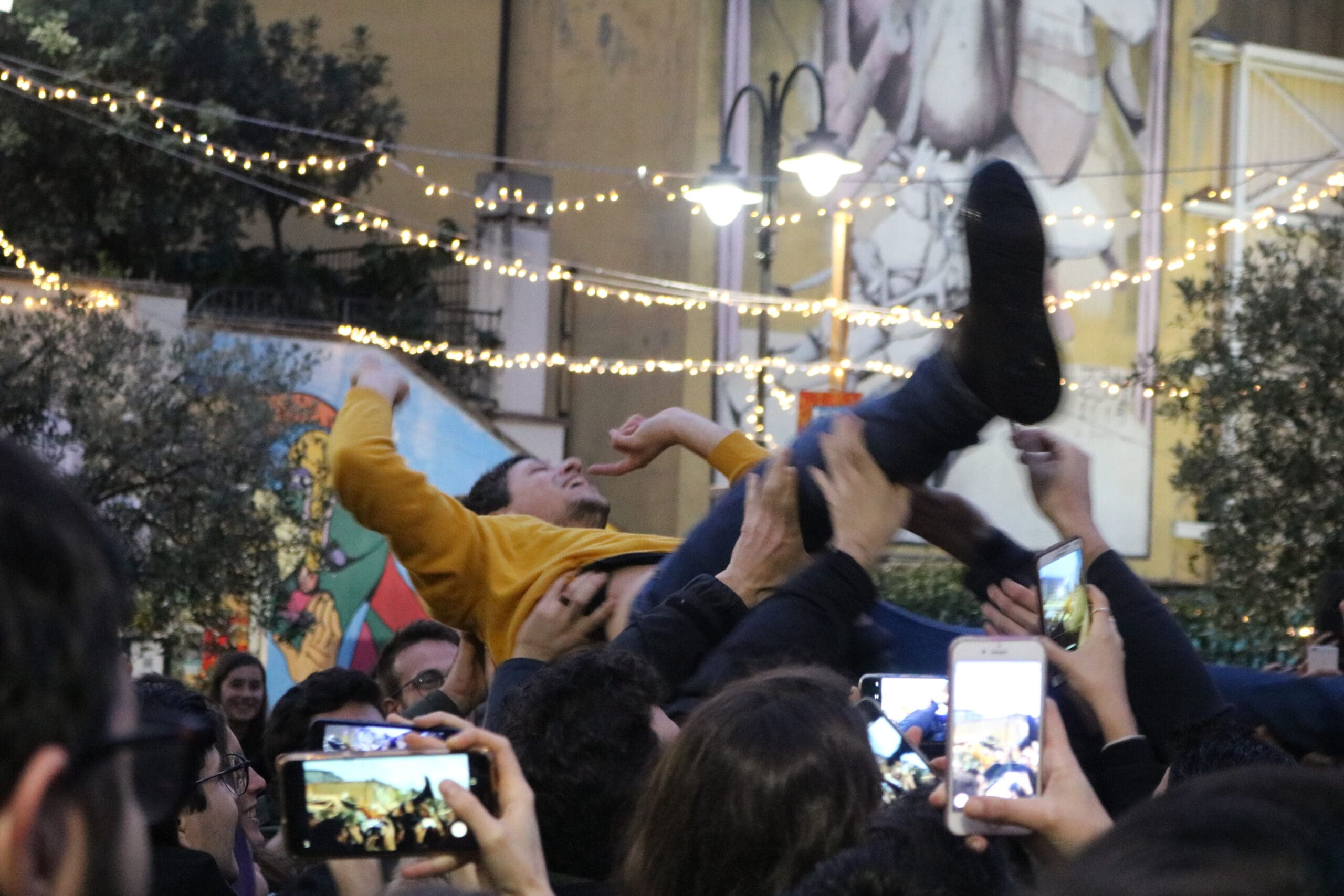 In tantissimi, nonostante la pioggia, hanno accolto l’appello di Eugenio, Lorenzo, Emanuele e Paolo e si sono ritrovati per cantare insieme i brani della loro discografia.