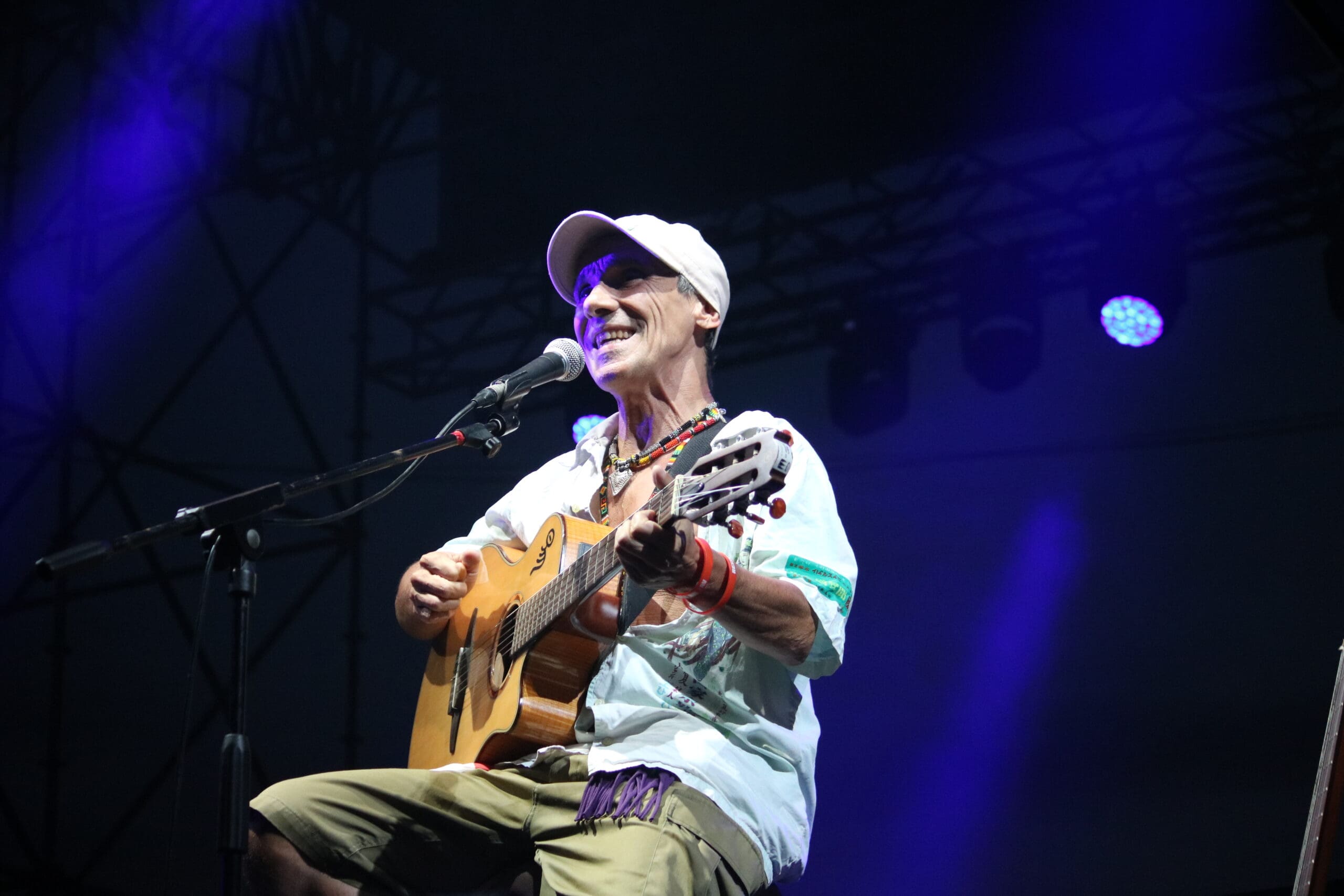Sparito anche l’ultimo raggio di sole appena tramontato, un caldo applauso ha salutato l’arrivo di Manu Chao che ha imbracciato subito la sua chitarra.