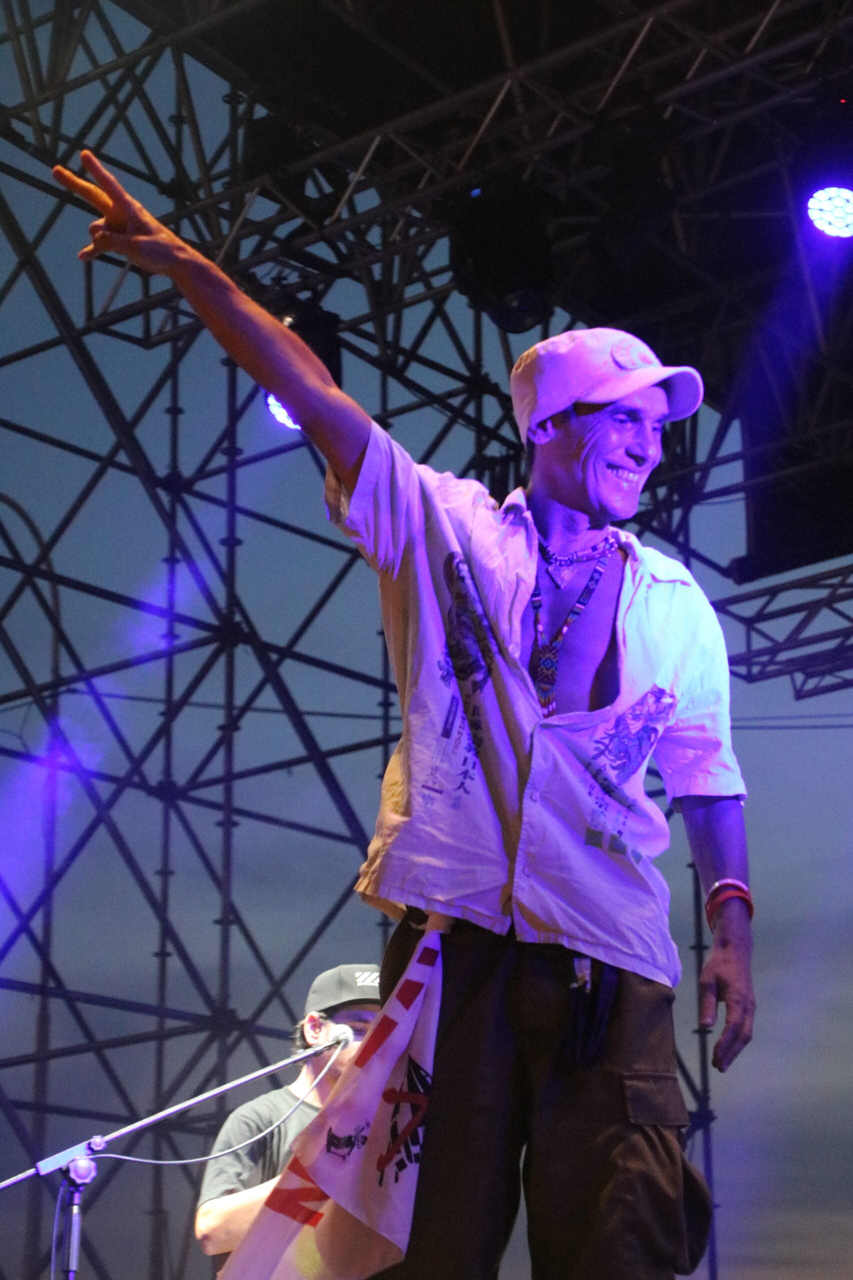 La gioia, la lotta, l’impegno, sono tre capisaldi e per tutto il concerto l’ex Mano Negra chiama il pubblico che risponde cantando in coro.