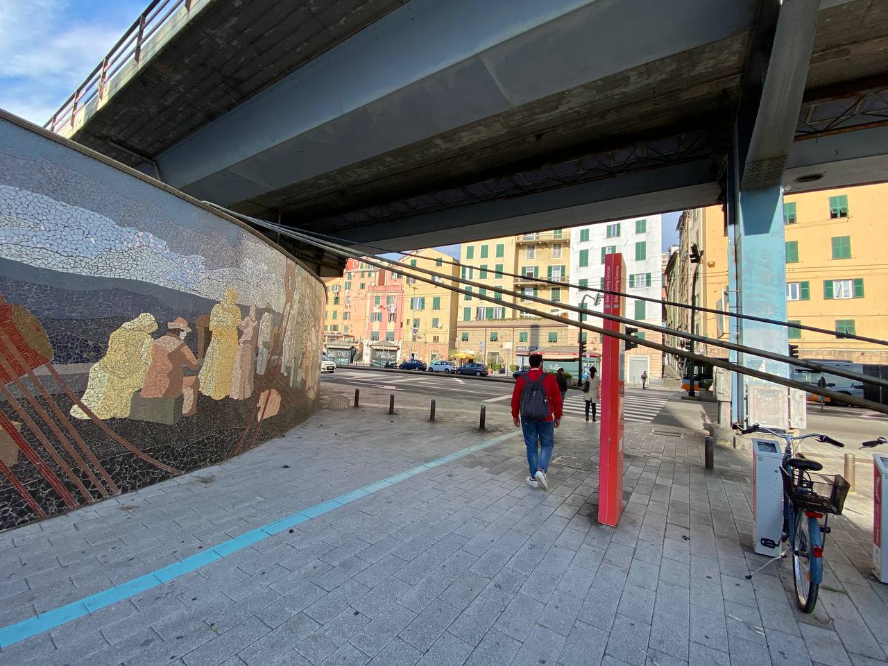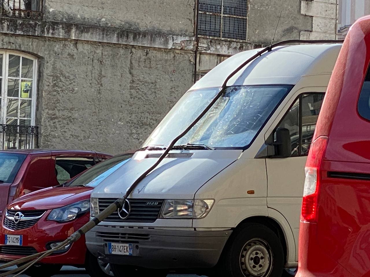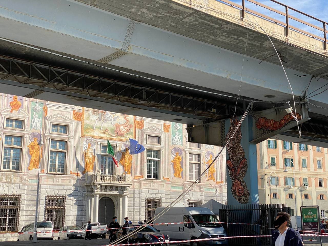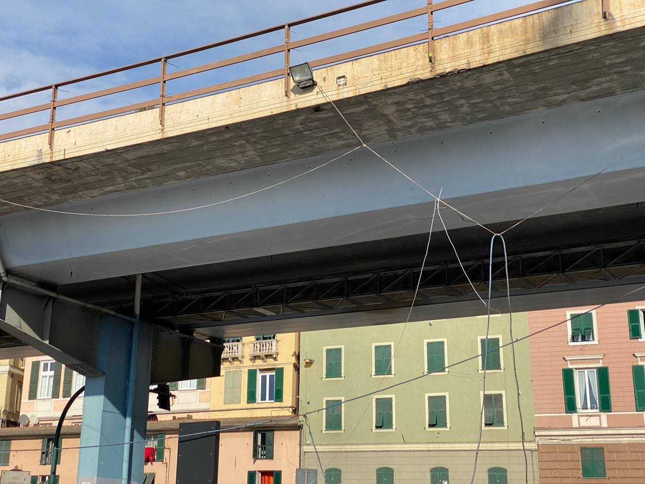 Genova – Un grosso e pesante cavo, probabilmente elettrico, si è staccato dall’impalcato della strada Sopraelevata, sul lato mare della Sopraelevata, precipitando sui passanti e sulle auto in sosta nei parcheggi della zona.
