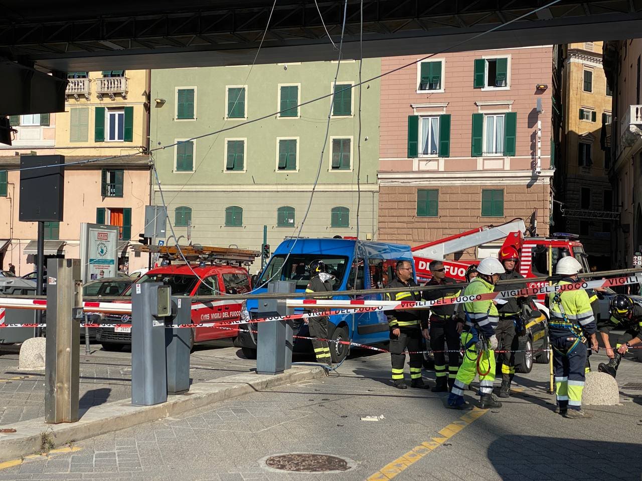 Il cavo, per cause che sono ancora in fase di accertamento, si è staccato ed è precipitato sulla strada sottostante colpendo alcune persone e numerose auto e motoveicoli in sosta anche nel parcheggio dell’Acquario di Genova, molto frequentato da bambini.