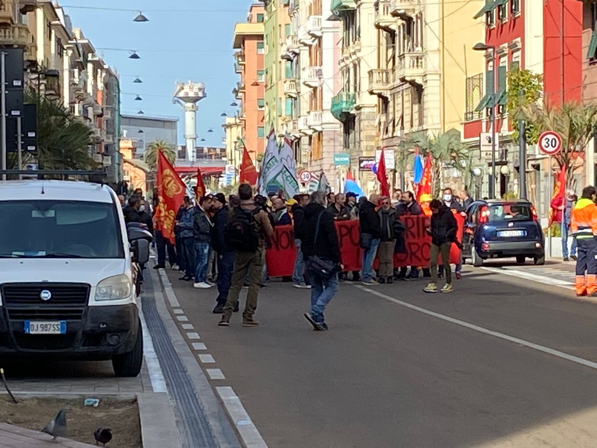 I manifestanti si stanno muovendo su via Cornigliano e la strada risulta al momento bloccata.